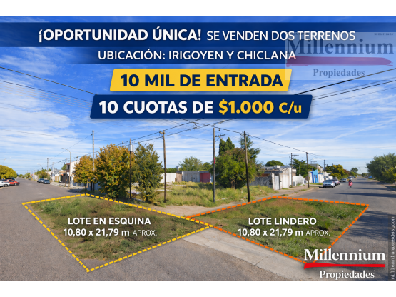 ¡Oportunidad única! Se venden dos terrenos en ubicación privilegiada: uno en esquina y el otro adyacente. Ambos tienen medidas de 10,80 x 21,79 m (el de la esquina con menos metros por la ochava). El propietario escucha propuestas para venta conjunta o permuta por departamentos en el mismo terreno o en otro. ¡Flexibilidad total y dispuesto a negociar! Ideal para proyectos inmobiliarios. No dejes pasar esta oportunidad y consultanos para más detalles.